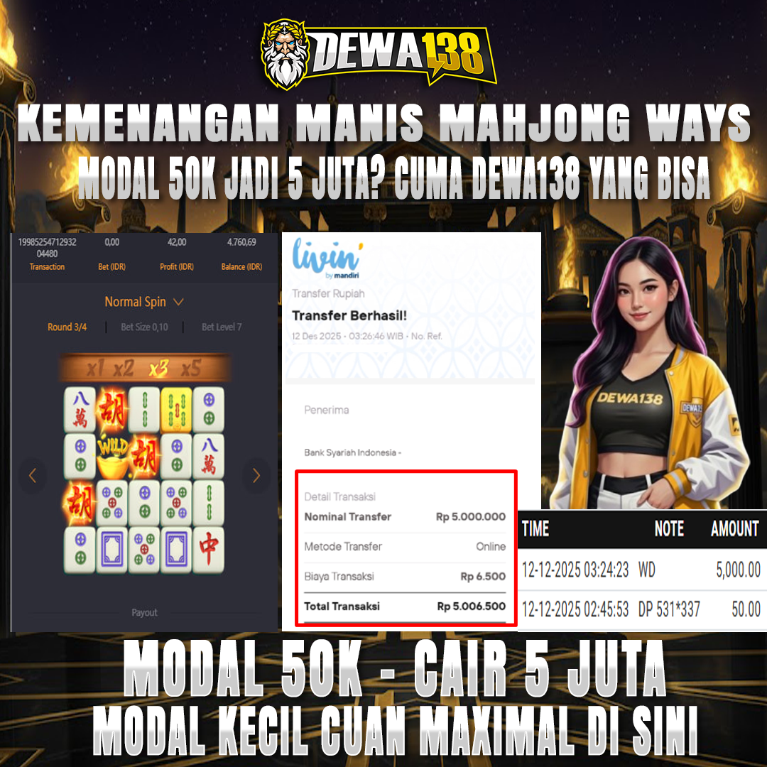 Gabung bersama DEWA138 dan Dapatkan kesempatan jackpot sensasional dalam 15 menit separate bukti banner ini bukan sekedar janji hanya Depo 50k Withdraw 5 juta hari ini.
